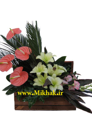جعبه گل ۶۳۴در این جعبه گل از داودی مینیاتوری، رز، آلسترومریا استفاده شده است که این گلها همگی درون یک جعبه گل زیبا همراه با برگ های تازه تزئین شده است. اندازه تقریبی ارتفاع این جعبه گل ۵۰ سانتیمتر میباشد.