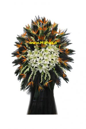 گل ترحیم ۳۲۵در این سبد گل ترحیم از۲۳لیلیوم،۳۲استرلزیا، مریم استفاده شده است که این گلها همگی درون یک پایه گل زیبا همراه با برگ های تازه تزئین شده است. اندازه تقریبی این دسته گل ۱۷۰سانت ارتفاع میباشد.