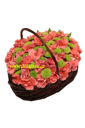 سبد گل ۱۰۹در این سبد گل از میخک مینیاتوری،داودی مینیاتوری استفاده شده است که این گلها همگی درون یک سبد گل زیبا همراه با برگ های تازه تزئین شده است. اندازه تقریبی این سبد گل ۳۰ سانت ارتفاع میباشد.