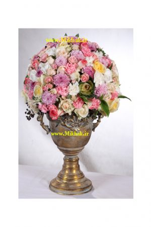 گلدان ۵۲۴در این جام گل از ۲۰ شاخه رز، ۱۰شاخه هورتانسیا، ۲ دسته میخک، ۵ دسته لیسیانتوس استفاده شده است که این گلها همگی درون یک جام گل زیبا همراه با برگ های تازه تزئین شده است. اندازه تقریبی ارتفاع این جام گل ۴۵ سانتیمتر میباشد.