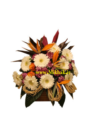 جعبه گل ۶۳۲در این سبد گل از داودی مینیاتوری، رز مینیاتوری، میخک مینیاتوری استفاده شده است که این گلها همگی درون یک سبد گل زیبا همراه با برگ های تازه تزئین شده است. اندازه تقریبی ارتفاع این سبد گل ۶۰ سانتیمتر میباشد.