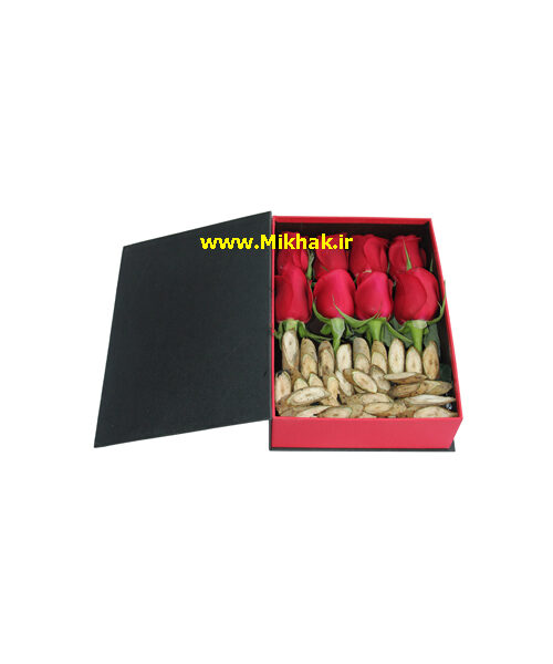 در این جعبه گل از  رز استفاده شده است که این گلها همگی درون یک جعبه زیبا همراه با برگ های تازه تزئین شده است. اندازه تقریبی این دسته گل ۲۰ سانت طول میباشد.