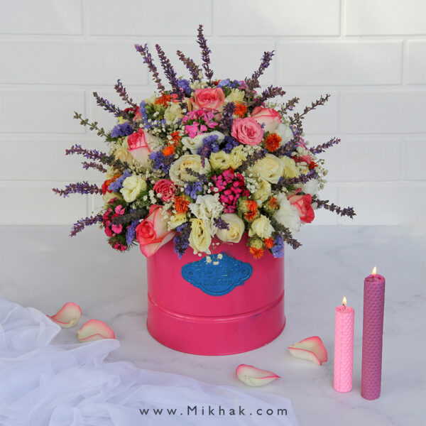 در این جعبه گل از گلهای رز و گلهای فصلی استفاده شده است که این گلها همگی درون یک جعبه گل زیبا همراه با برگ های تازه تزئین شده است. اندازه تقریبی ارتفاع این جعبه گل ۵۰ سانتیمتر  میباشد.