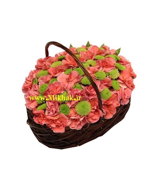 در این سبد گل از میخک مینیاتوری،داودی مینیاتوری استفاده شده است که این گلها همگی درون یک سبد گل زیبا همراه با برگ های تازه تزئین شده است. اندازه تقریبی این سبد گل ۳۰ سانت ارتفاع میباشد.