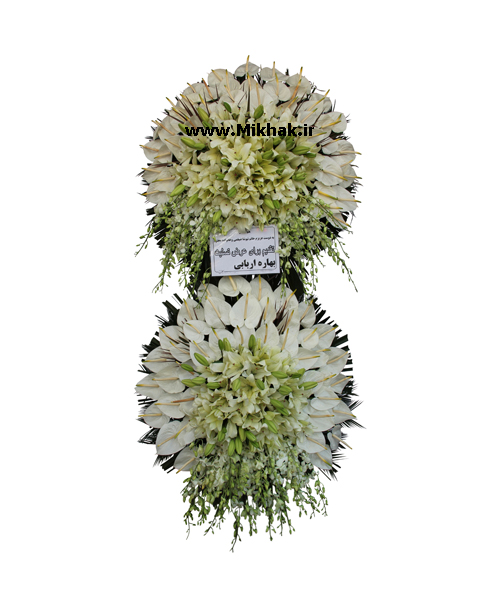 در این سبد گل ترحیم ازآنتریوم ،لیلیوم،ارکیده استفاده شده است که این گلها همگی درون یک پایه گل زیبا همراه با برگ های تازه تزئین شده است. اندازه تقریبی این دسته گل ۲ متر ارتفاع میباشد.