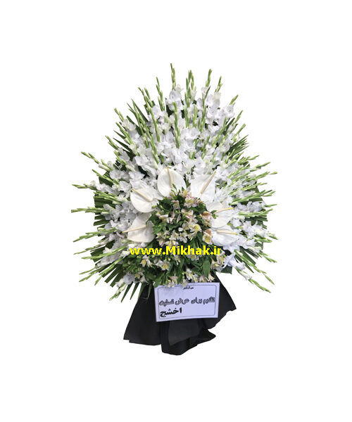 در این سبد گل ترحیم از۶آنتریوم ، ۷۰ گلایل ،۱۵ آلسترومریا استفاده شده است که این گلها همگی درون یک پایه گل زیبا همراه با برگ های تازه تزئین شده است. اندازه تقریبی این پایه گل ۱۱۰سانت ارتفاع میباشد.