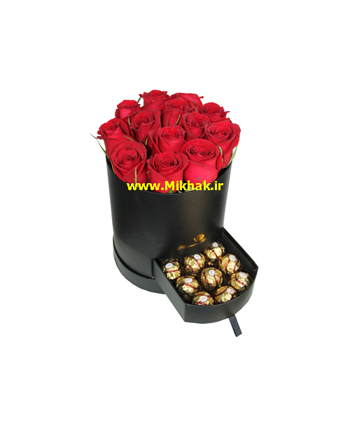 در این جعبه گل از ۱۳شاخه رز و ۱۲ عدد شکلات استفاده شده است که این گلها همگی درون یک جعبه زیبا همراه با برگ های تازه تزئین شده است. اندازه تقریبی این دسته گل ۲۰ سانت طول میباشد.