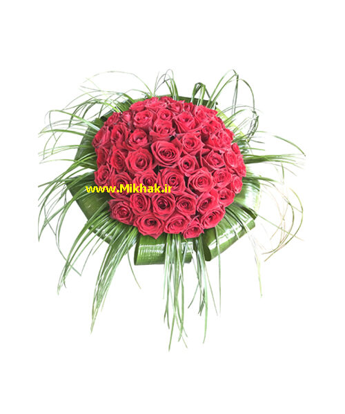 در این دسته گل از ۵۴ شاخه رز قرمز استفاده شده است که این گلها همگی درون یک دسته گل زیبا همراه با برگ های تازه تزئین شده است. اندازه تقریبی این دسته گل ۵۰سانت ارتفاع میباشد.