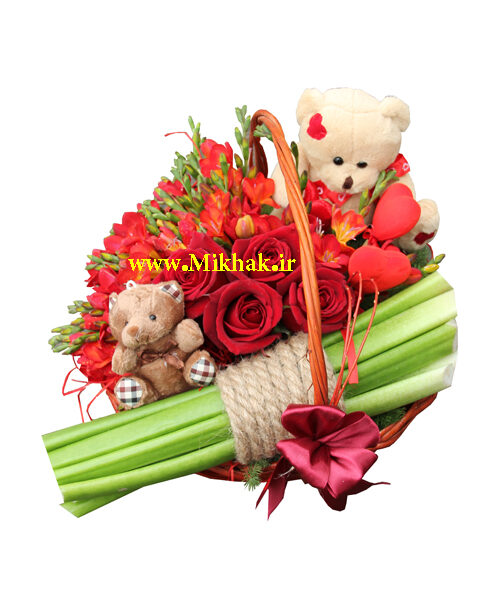 در این سبد گل از رز و فرزیااستفاده شده است که این گلها همگی درون یک سبد گل زیبا همراه با برگ های تازه تزئین شده است. اندازه تقریبی این سبد گل 50 سانت ارتفاع  میباشد.