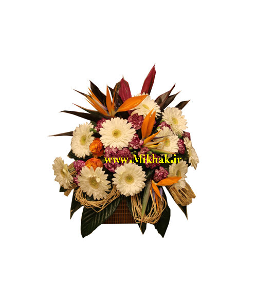 در این سبد گل از۱۰جربرا،۳استرلزیا،میخک مینیاتوری، ۲رز استفاده شده است که این گلها همگی درون یک سبد گل زیبا همراه با برگ های تازه تزئین شده است. اندازه تقریبی این سبد گل ۴۵ سانت ارتفاع میباشد.