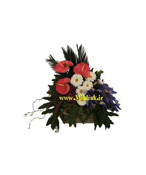 در این سبد گل از۳آنتریوم،۵جربرا،۵زنبق استفاده شده است که این گلها همگی درون یک سبد گل زیبا همراه با برگ های تازه تزئین شده است. اندازه تقریبی این سبد گل ۴۵ سانت ارتفاع میباشد.