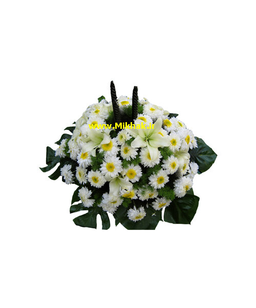 در این سبد گل ترحیم از۷ لیلیوم وداودی مینیاتوری استفاده شده است که این گلها همگی درون یک پایه گل زیبا همراه با برگ های تازه تزئین شده است. اندازه تقریبی این دسته گل۵۵سانت ارتفاع میباشد.