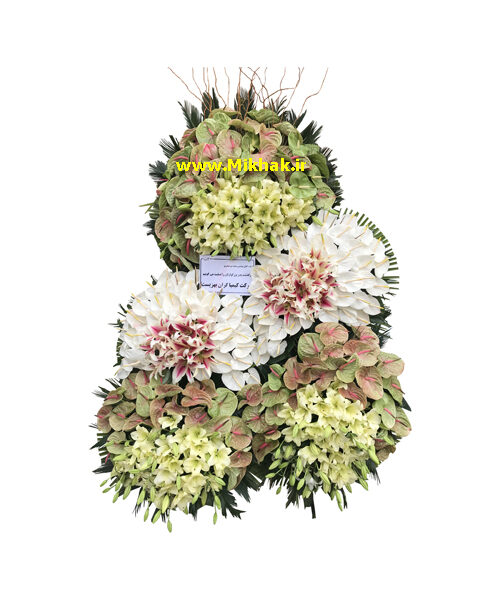در این پایه گل ترحیم از155آنتریوم ،116 لیلیوم استفاده شده است که این گلها همگی درون یک پایه گل زیبا همراه با برگ های تازه تزئین شده است. اندازه تقریبی این پایه گل 3 متر ارتفاع میباشد.